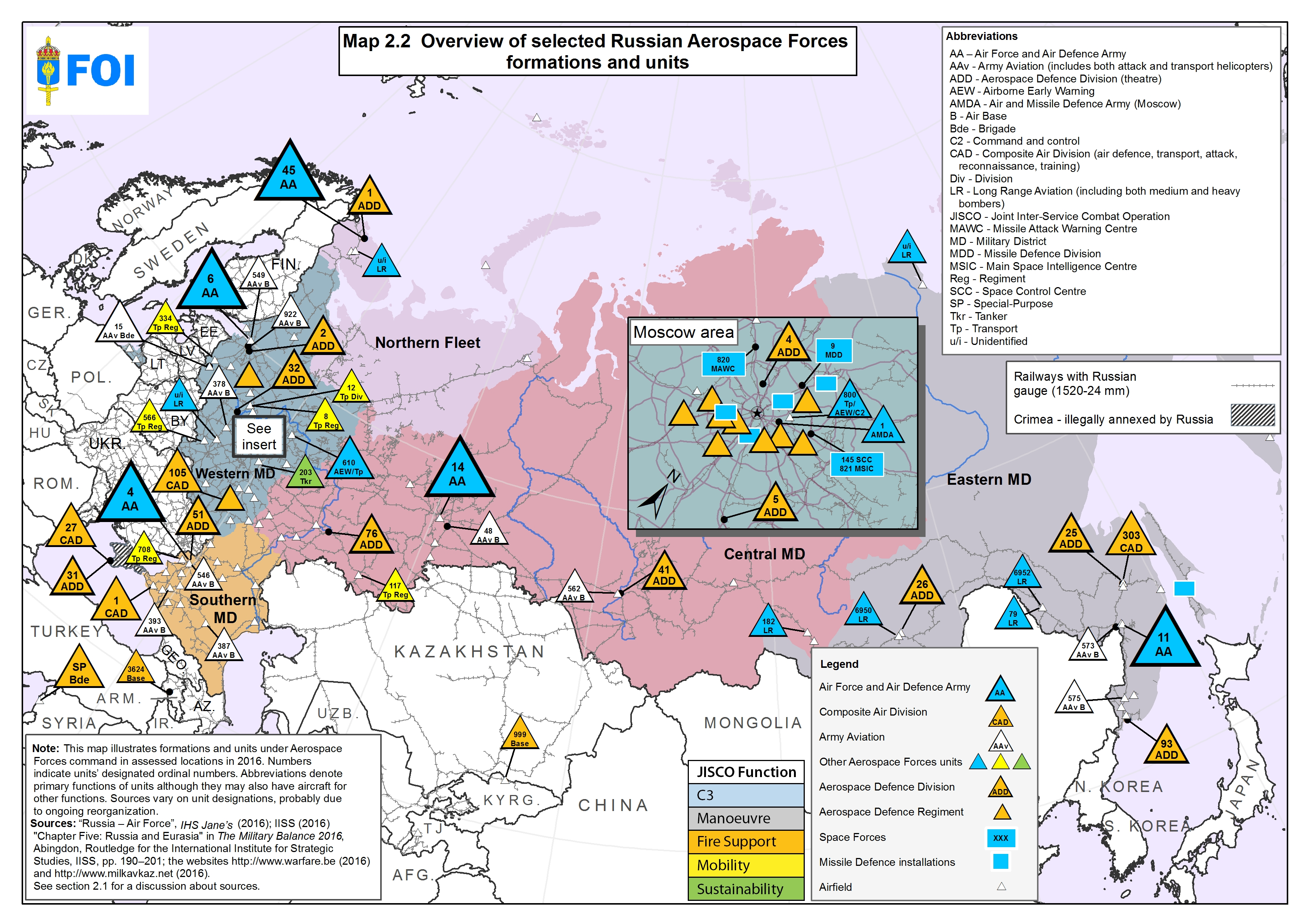Opens in new window. - Map 2.2 Overview of selected Russian Aerospace Forces formations and units