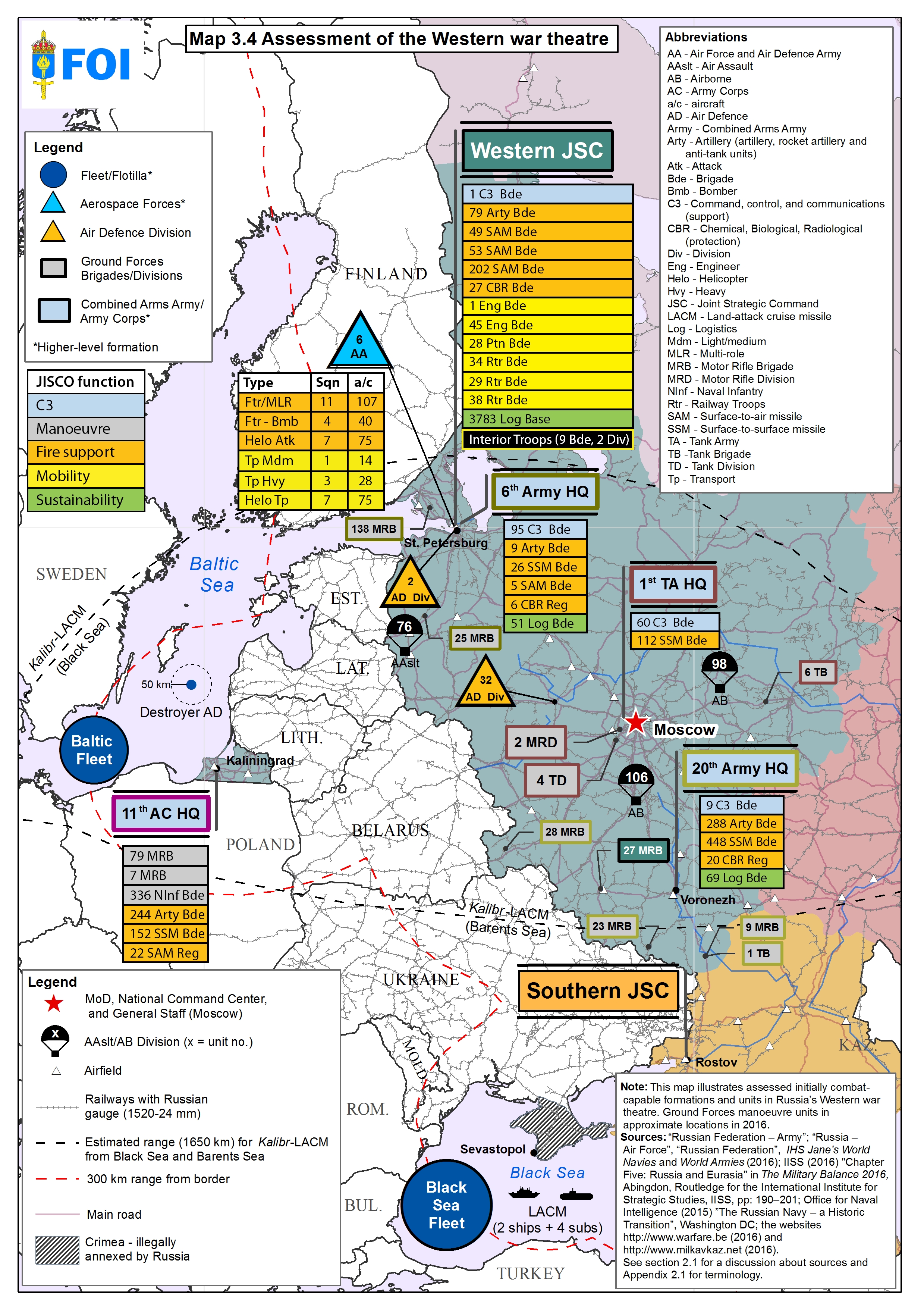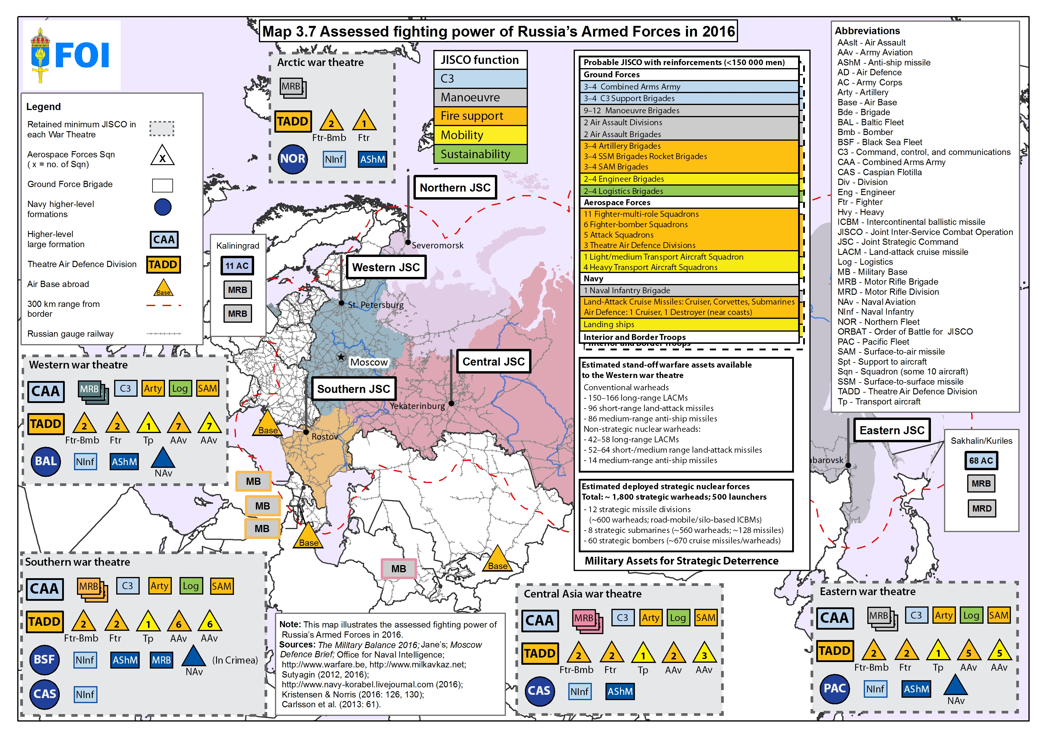 Opens in new window. - Map 3.7 Assessed fighting power of Russia's Armed Forces in 2016