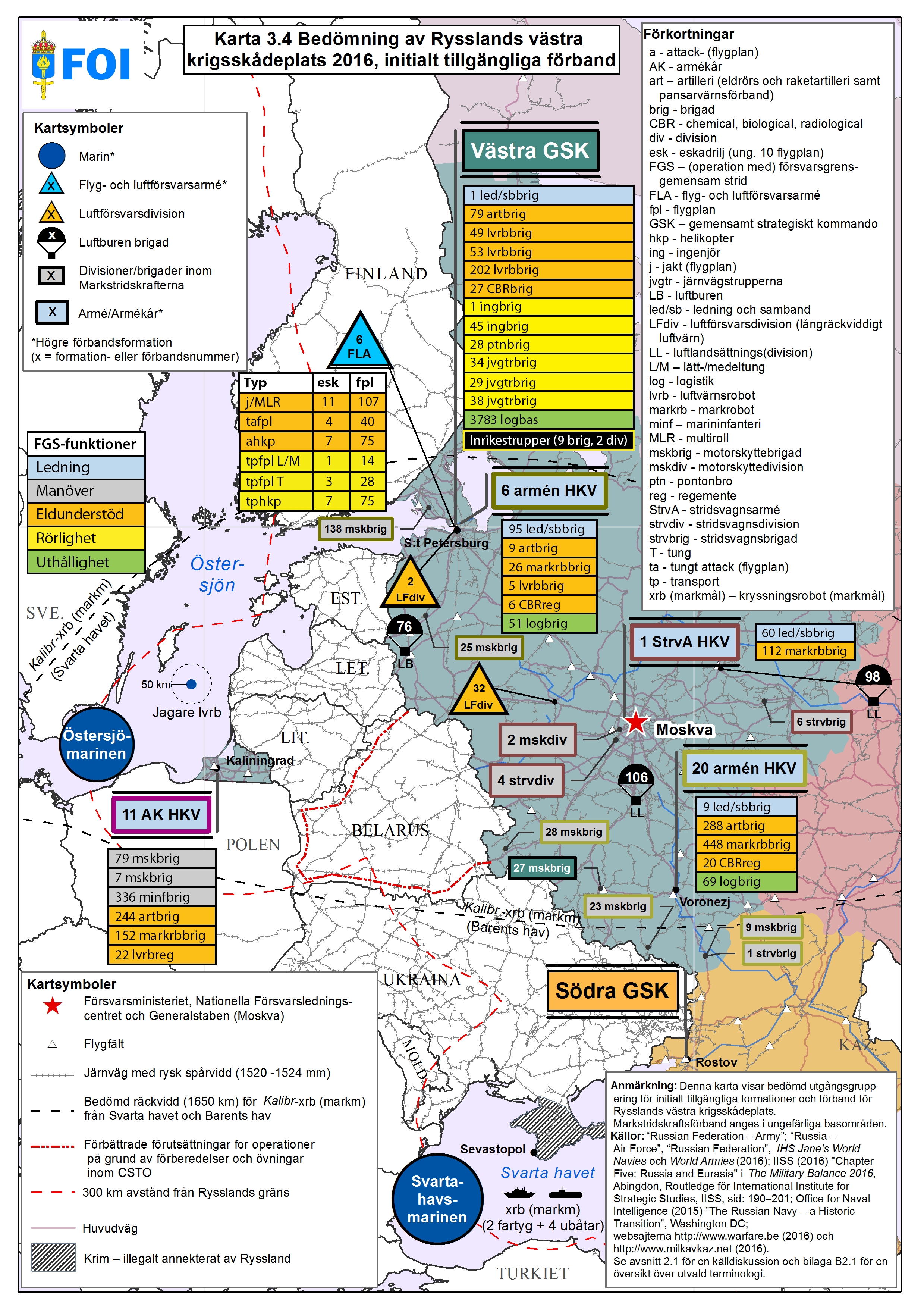Öppnas i nytt fönster. - Karta 3.6 Bedömda fjärrstridsresurser för Rysslands västra krigsskådeplats