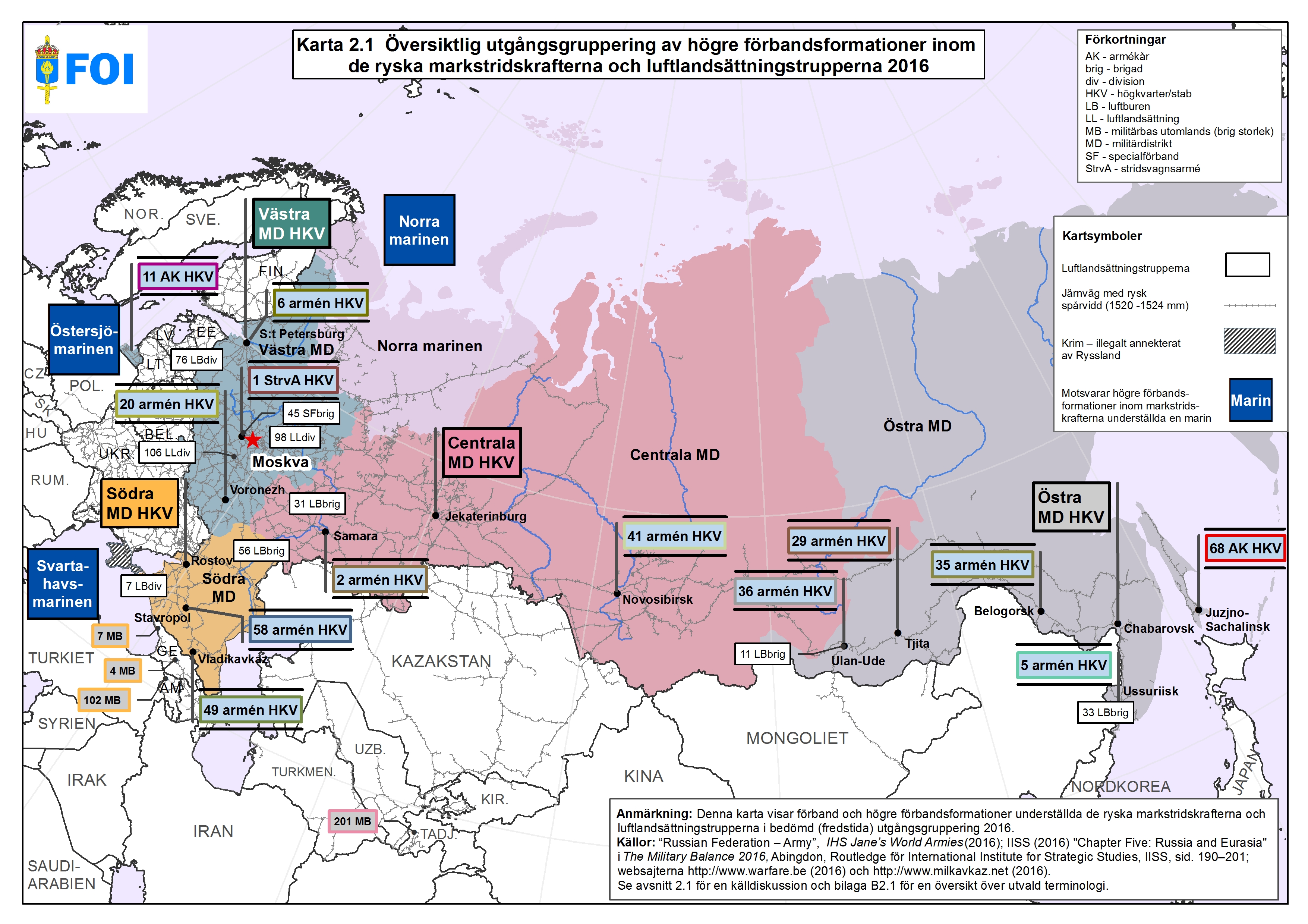 - Karta 2.1 Översiktlig utgångsgruppering av högre förbandsformationer inom de ryska markstridskrafterna och luftlandsättningstrupperna