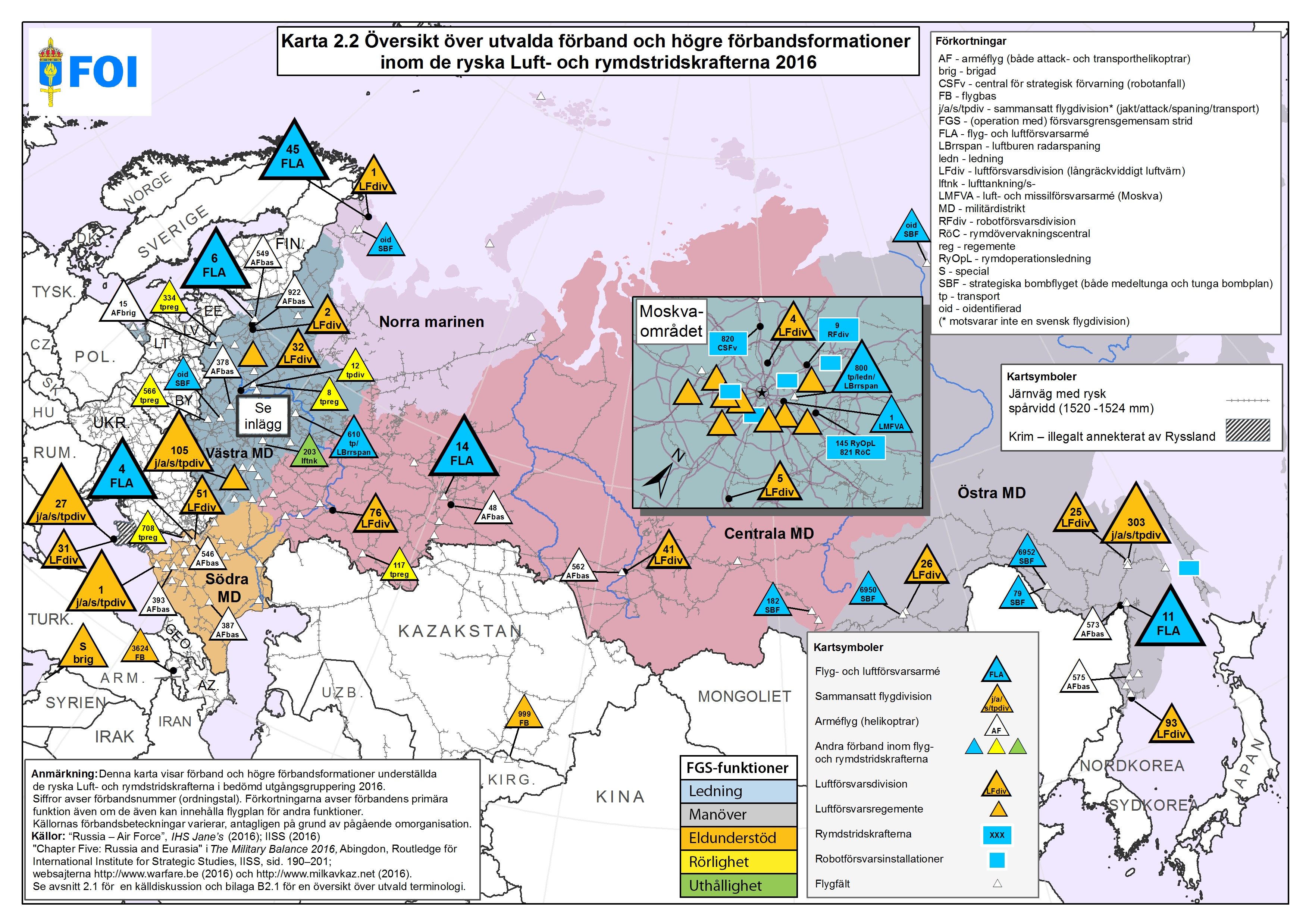 Öppnas i nytt fönster. - Karta 2.2 Översikt över utvalda förband och högre förbandsformationer inom de ryska Luft- och rymdstridskrafterna