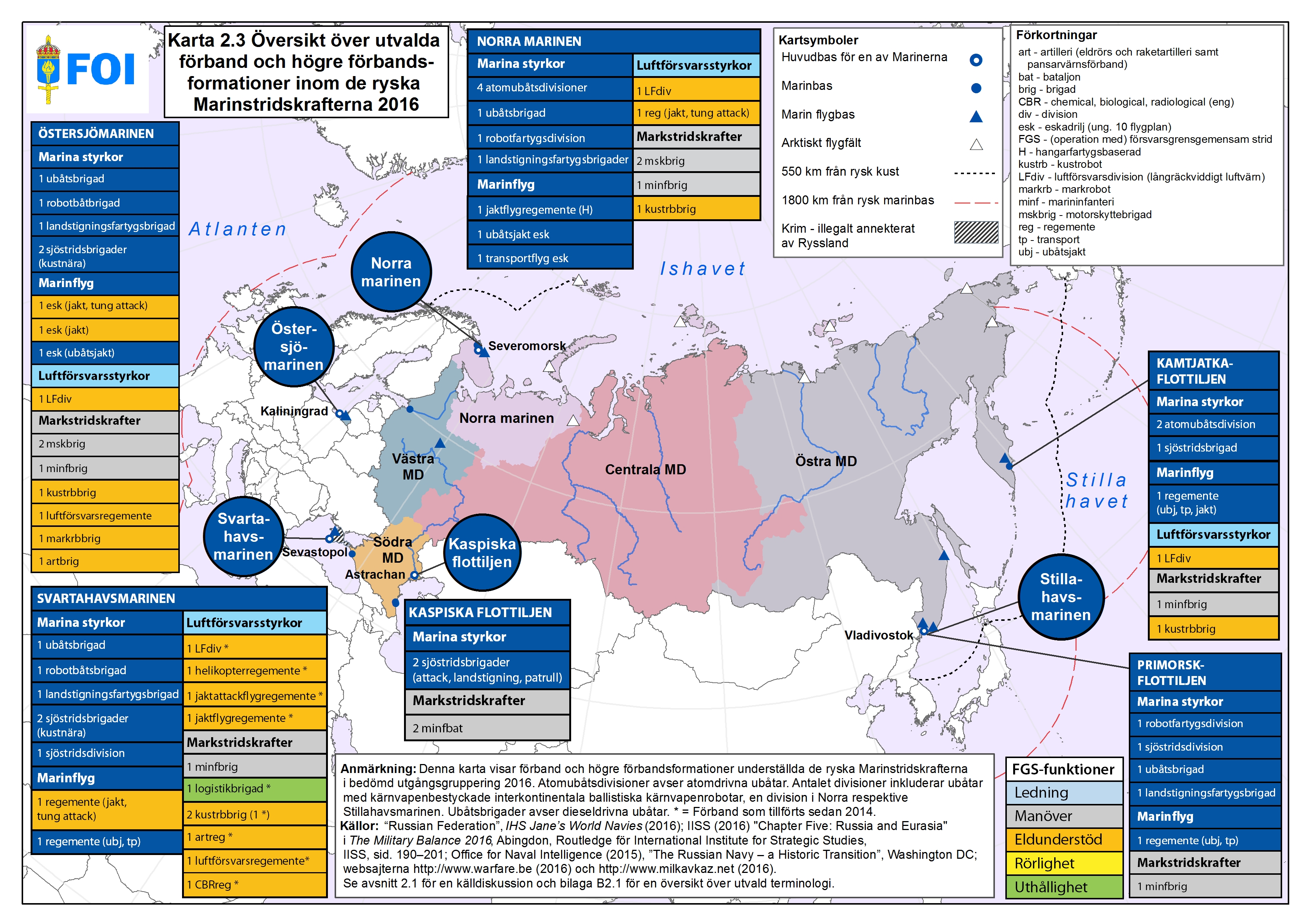 Öppnas i nytt fönster. - Karta 2.3 Översikt över utvalda förband och högre förbandsformationer inom de ryska Marinstridskrafterna