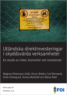 Denna rapport beskriver riskerna med utländska direktinvesteringar i skyddsvärda verksamheter, kartlägger vilka områden och branscher där utländska direktinvesteringar kan få negativa konsekvenser för säkerheten, samt anger generella egenskaper och omständigheter hos investerare som kan innebära en säkerhetsrisk vid en investering. I rapporten konstateras att det finns flera risker med utländska direktinvesteringar i skyddsvärda verksamheter: risker för minskad yttre och inre säkerhet, risker för skada på nationell samhällsviktig verksamhet samt risker för skada på Sveriges ekonomi. I rapporten diskuteras olika myndigheters definitioner av skyddsvärda verksamheter för att identifiera vilka områden och branscher som kan vara extra känsliga, och där således vissa utländska direktinvesteringar kan få negativa konsekvenser för säkerheten. Tillgänglig statistik på direktinvesteringstillgångar visar att Europa står för majoriteten av dessa men att Asien ökat sin andel av direktinvesteringstillgångarna i Sverige på senare år. Störst andel av direktinvesteringstillgångar återfinns inom finans och försäkring, därefter raffinerad petroleum samt kemiska produkter och läkemedel. I rapporten konstateras slutligen att det finns ett antal generella egenskaper och omständigheter hos investerare, som kan vara värda att uppmärksamma, nämligen nationalitet, ägarstruktur, sektordominans, graden av demokrati och mänskliga rättigheter samt graden av antagonism gentemot Sverige och med Sverige nära förbundna stater. Fallstudier görs av Kina, Ryssland och Iran.