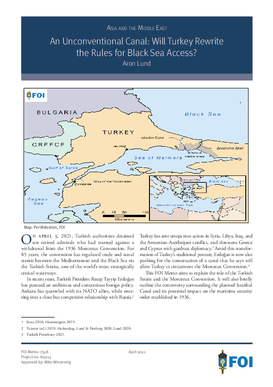 Sedan 1936 har all sjötrafik genom de två turkiska sunden Bosporen och Dardanellerna reglerats av Montreuxkonventionen. Konventionen stipulerar fri civil sjöfart genom denna kritiskt viktiga sjöled, men begränsar samtidigt örlogsfartygs rätt att passera, för att på så vis bevara den marina maktbalansen i Svarta havet. Turkiets president Recep Tayyip Erdogan har nu börjat konstruera en kanal som, hävdar han, kommer att operera utanför konventionens ramverk. Försöker Erdogan skriva om de regler som styr de turkiska sunden - och vad skulle det betyda för säkerheten i Medelhavet och Svarta havet? I denna FOI Brief förklarar Aron Lund, en analytiker vid FOI:s Asien- och Mellanösternprogram, vilken roll de turkiska sunden, Montreuxkonventionen och Istanbulkanalen spelar för regional stabilitet och säkerhet.