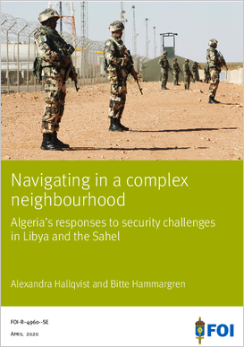 Algeriet har traditionellt haft en stabiliserande roll i en konfliktdrabbad och instabil region. Idag står landet inför omfattande politiska och ekonomiska utmaningar, samtidigt som utvecklingen i framförallt Libyen och Sahel utgör komplexa och gränsöverskridande hot för landets säkerhet. Denna rapport har ett tvådelat syfte. Förutom att ge en överblick över centrala aspekter i Algeriets historia, politik, ekonomi, militär och den aktuella politiska händelseutvecklingen, syftar rapporten till att analysera hur Algeriet agerar i relation till instabiliteten i Libyen och Sahel. I rapporten diskuteras även om Algeriets egen inrikespolitiska och ekonomiska situation kan komma att påverka landets agerande gentemot dessa närområden. I rapporten dras slutsatsen att Algeriet hanterar ett försämrat säkerhetsläge i Libyen och Sahel med såväl diplomatiska som militära och ekonomiska medel. Trots stora regionala utmaningar och inrikespolitiska förändringar har Algeriet i hög grad hållit fast vid principer som formades efter landets självständighetskrig 1954- 1962, såsom icke-inblandning och alliansfrihet. Kontrollen av landets gränser och kontraterrorism är två prioriterade områden. I nuläget tyder ingenting på att denna hållning kommer att ändras på kort sikt. Inrikespolitisk turbulens och ekonomiska svårigheter leder dock till att Algeriets förhållningssätt till konflikterna i närområdet är mer oförutsägbara i ett längre perspektiv.